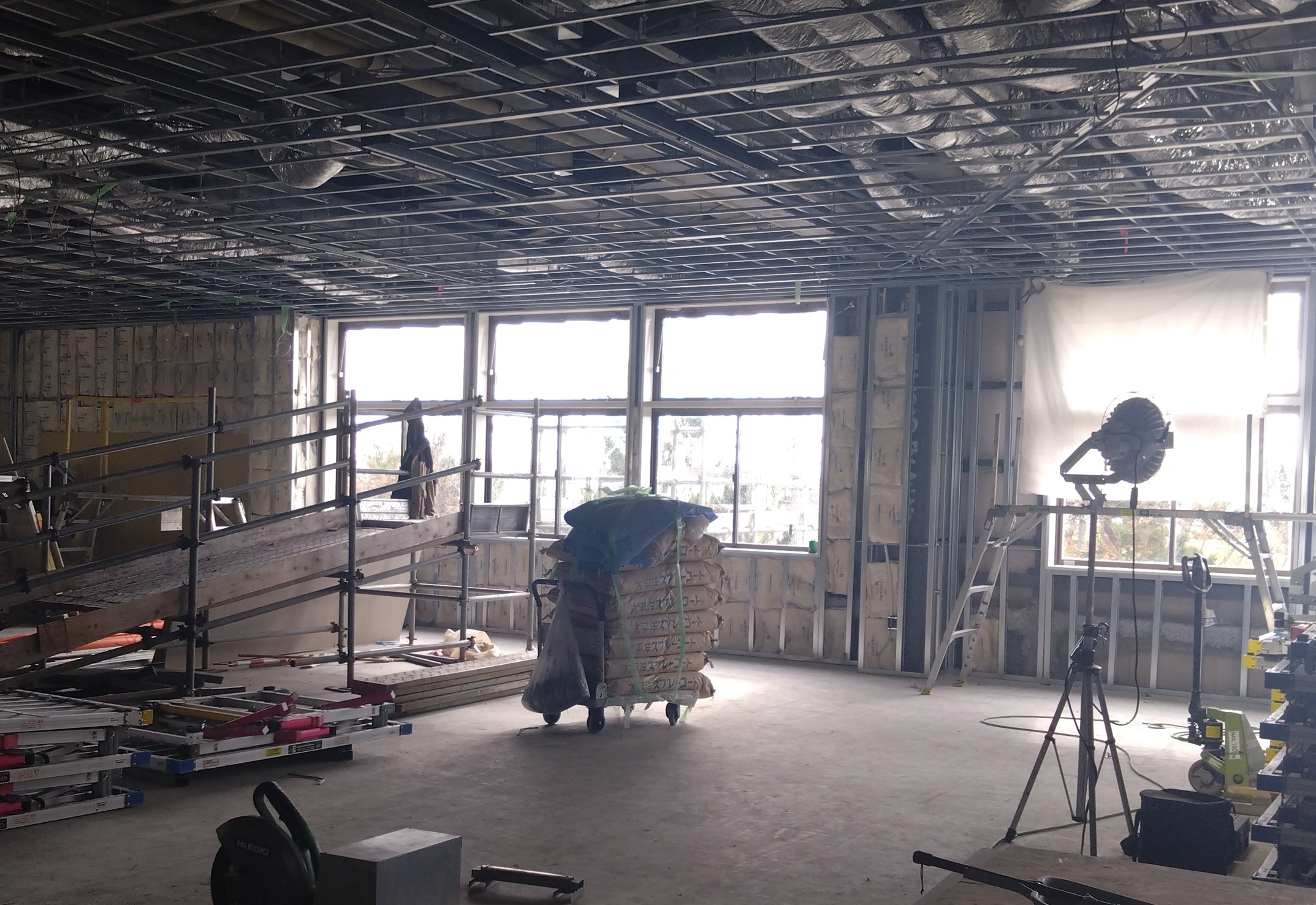 今月から2階の執務スペースと旧食堂の内装工事が始まりました。